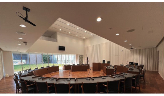 写真1 太子町議会の本会議場。2015年にリニューアルされた新庁舎の一角、議会棟の1階にある。