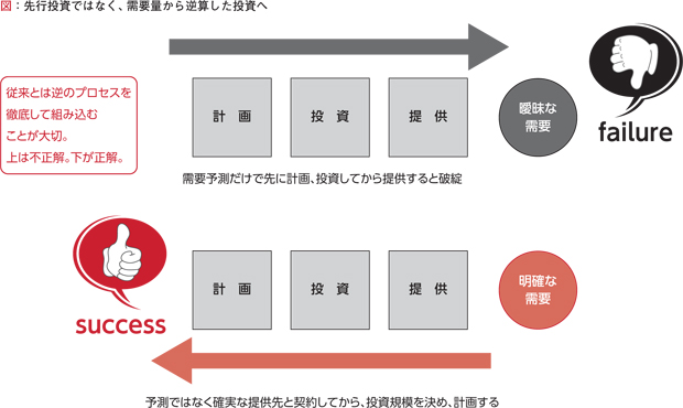 さらに、事業の進め方を時代に合致する後続投資型にするため、しっかりと投資前に実需をつかみ、その上で投資を行って、確実な利益回収で地域経済をプラスにしています。