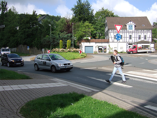 同国ノルトライン・ベストファーレン州の人口1万8,000人の地方都市のロータリー近くの横断歩道でカメラ片手に止まったら、逆に停止した車がクラクションを鳴らして横断を促してくれたこともある。