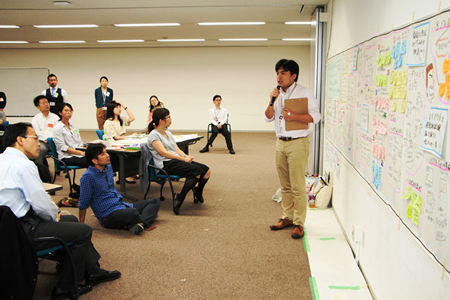 講座の内容は、ペンの持ち方、線の引き方、丸を描いて口と目だけで表情を描き、そこに星を描けば体を描けるなど超初歩的なところから、枠線の使い方、模造紙に描くときのレイアウトの実例、グラフィックを使って伝えたいことをシンプルにして対話することやファシリテーションの意義の確認、さらに振り返りも行うなど、ひたすら書き、描く内容となった。