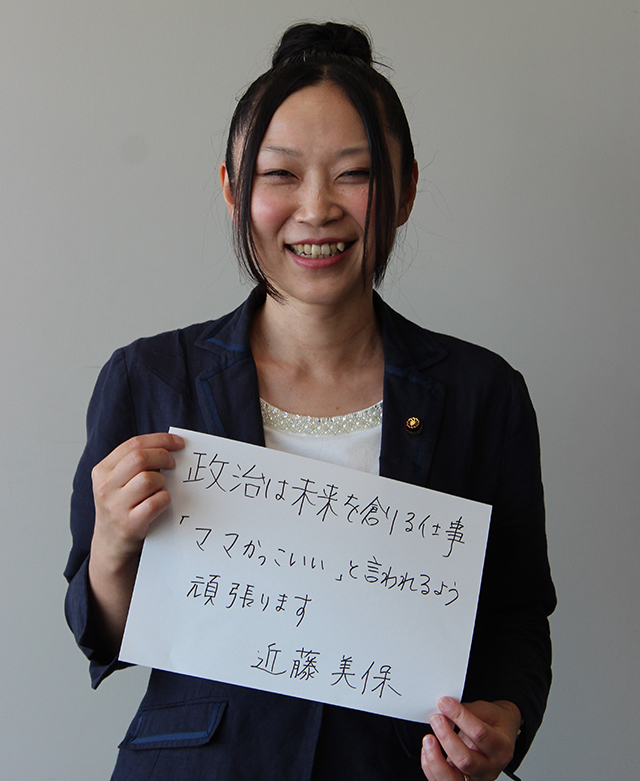 議会での地域のルールづくりも、いろいろな世代の代表、男女が参加することで、より納得性の高い、持続可能なものができる。私は新たな視点を加え、話合いを根気強くできる議員になりたいです。