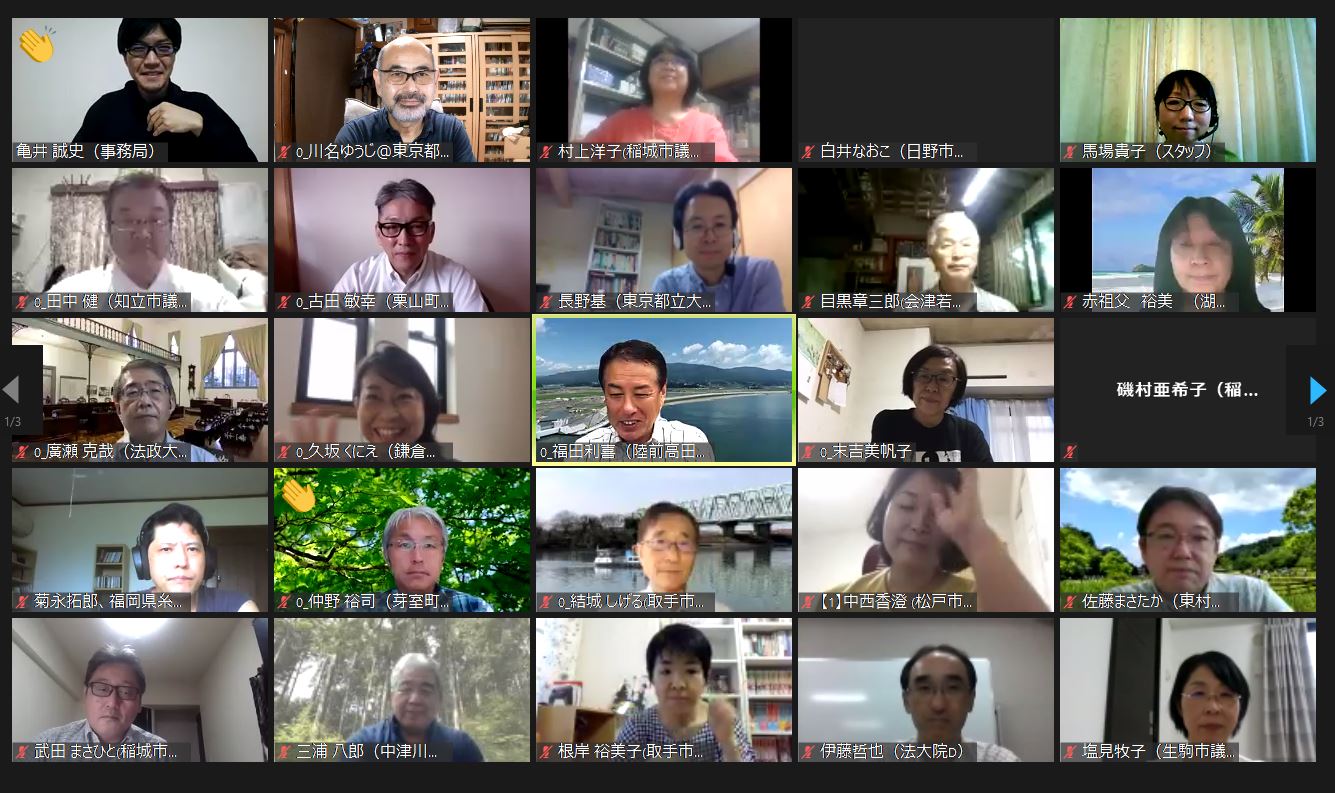 2020年7月25日(土曜)、「市民と議員の条例づくり交流会議2020【夏のオンライン】コロナ禍持久戦に備えよ」が、オンライン会議システムZoom上で開催されました。全国津々浦々から80名超の参加があり、この危機をどう乗り越えていくのかということへの、議会側の関心の高さがうかがえました。