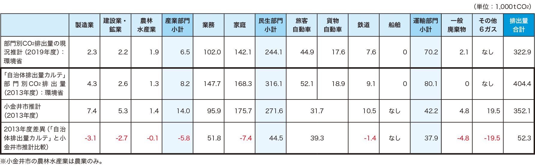 表 環境省の推計と地方公共団体(小金井市)の推計との差異