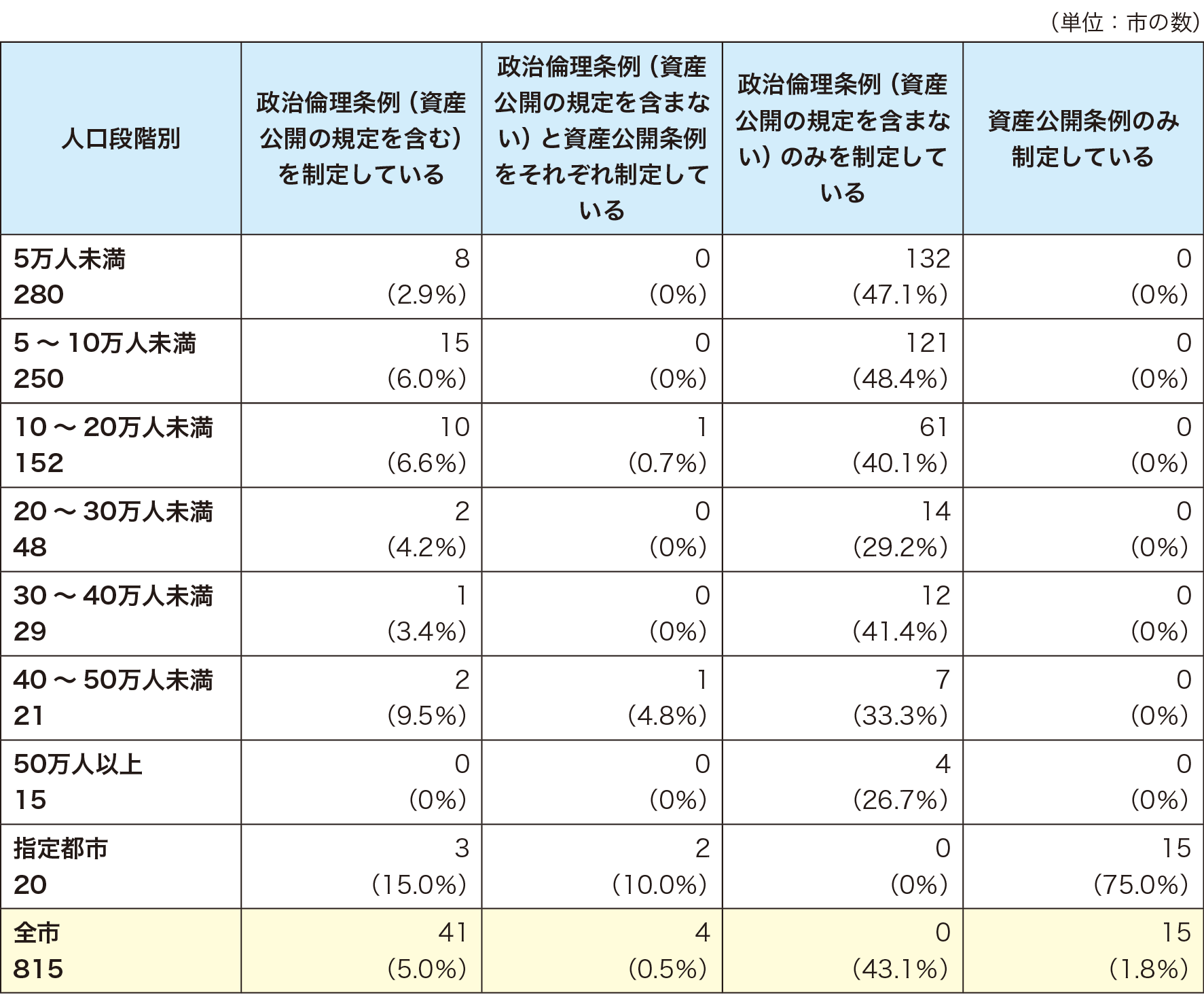 表1 議員についての政治倫理・資産公開に関する条例の制定状況