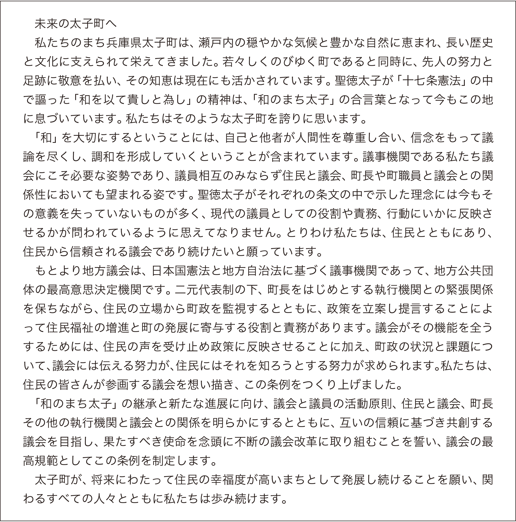 図 「和のまちをつくる太子町議会基本条例」の前文