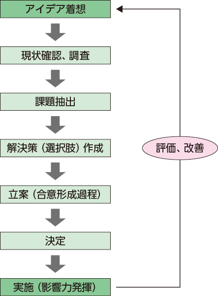 まず、イノベーションには、図に示すようなアイデアの着想から影響力発揮までのプロセスが求められます。そのプロセスの中で、イノベーションは、その妨げになる悪(あ)しき伝統、疲労、懐疑心、コミットメントの欠如、適正でないガバナンスシステム、リソース不足(人、金、時間等)と出合うことになります。そこでは、社会や人や組織との葛藤や競争が生じます。したがって、それらの葛藤を乗り越え、それらの競争に打ち勝ち影響力を発揮するまでのプロセスがイノベーションには求められるのです。