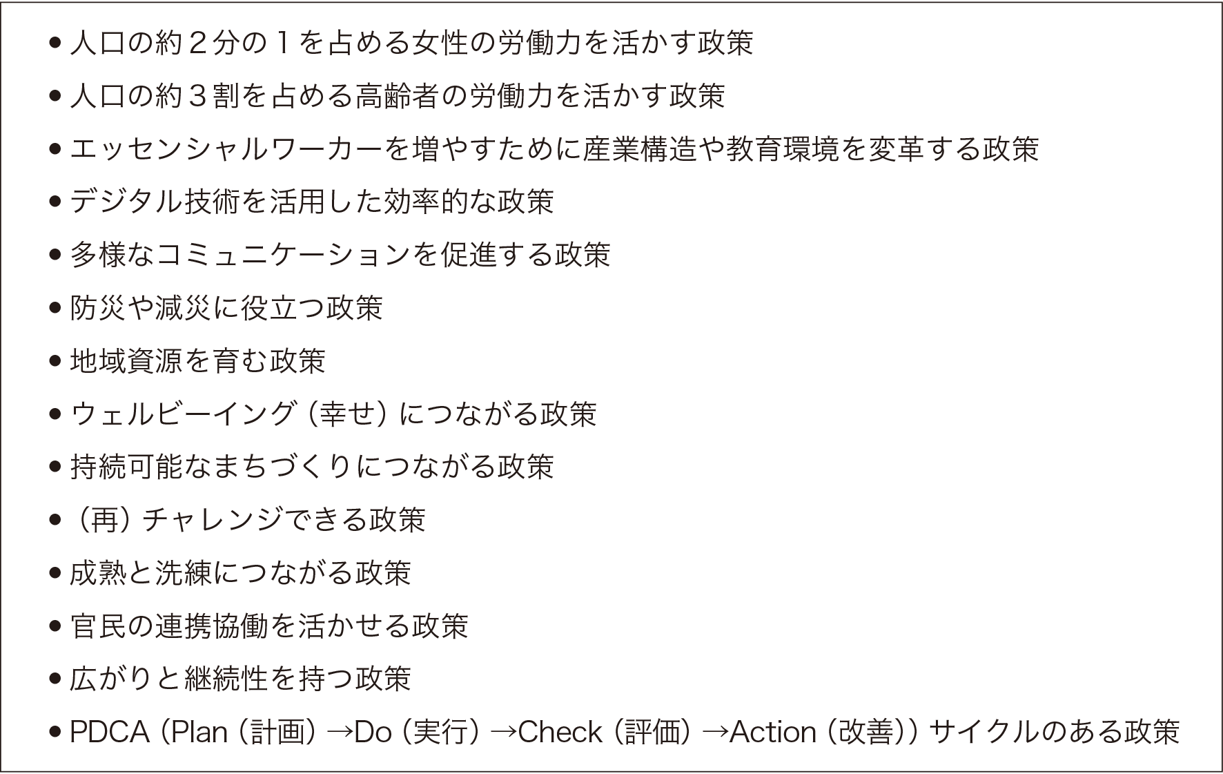 渡部がいうように、地方創生政策は、国が司令塔となり、実行部隊である自治体に地方版総合戦略の策定を義務付け、KPIを設定し、数値化により成果を検証することを必須とするものです。その検証は重要ですが、個々の成功事例や数値目標の達成にばかり目を向けると、地域における現実が見えなくなります。仮に、まち・ひと・しごと創生法の目的の一つである「東京圏への人口の過度の集中」が是正されたとしても、地方の暮らしが変わるわけではありません。自治体に求められるのは、地域の実情を踏まえ、国の政策に踊らされない取組みです(渡部 2024:155-156)。